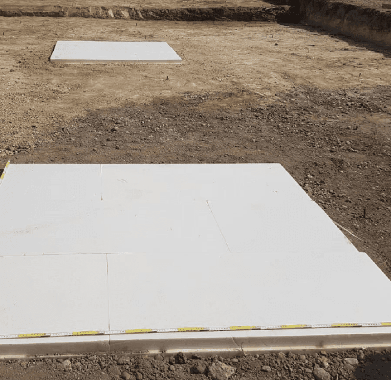 saltano all’occhio i 2 basamenti isolanti in XPS per fondazione in corrispondenza dei 2 unici pilastri dell’edificio:
