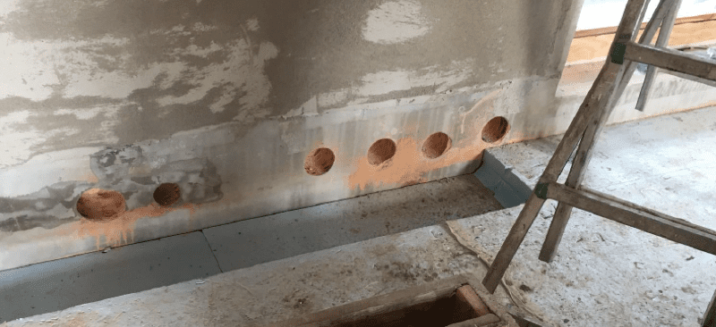per ottenere un taglio termico al piede della muratura in laterizio invece è stato previsto il riempimento con perlite: